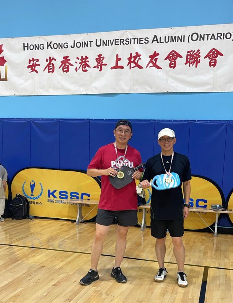 Bill Chan (WYK '86, on the left) is Champion of the pickleball tournament organized by Hong Kong Joint Universities Alumni (Ontario) on Saturday October 18.