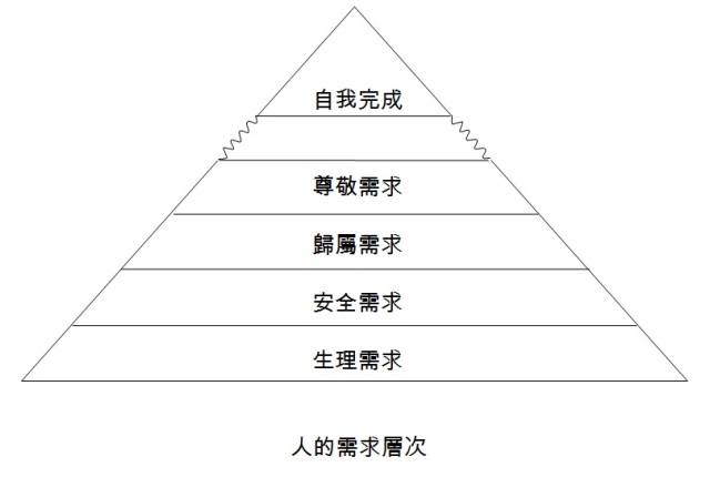 每個人都有需求,一種身心需要和心靈求上的動力。馬斯洛把所有的需求組織成為一個互相關聯又互動向上的系統,稱為「需求層次」(Hierarchy of Needs)。它大分五層,最高的一層具有特殊人生意義,反照人類高貴人格的多種特點。